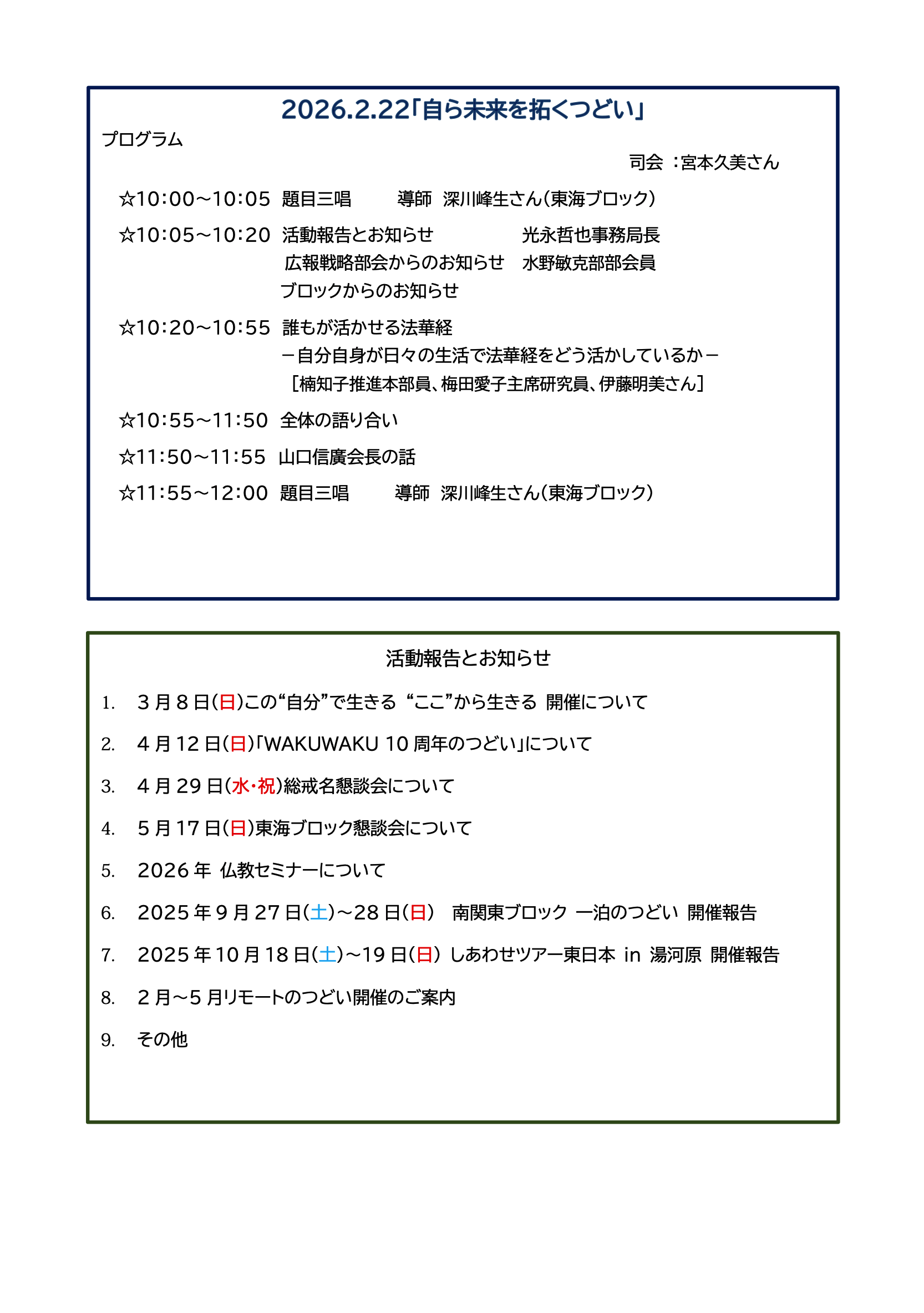 各種つどい